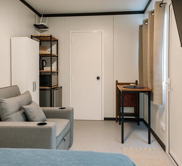 Cama Matrimonial o Individual + Sofá Cama según demanda.
