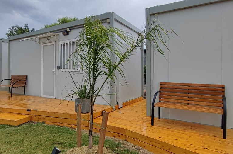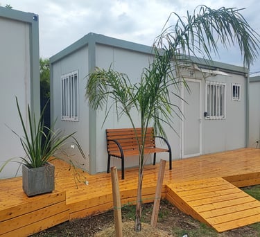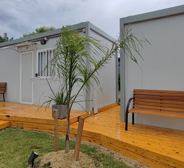 Apartamentos nuevos y luminosos, con salida directa a un deck de madera que se integra de forma natural con el entorno. Un espacio pensado para disfrutar del aire libre, con una vista serena al jardín y rodeado de áreas verdes que invitan al descanso.